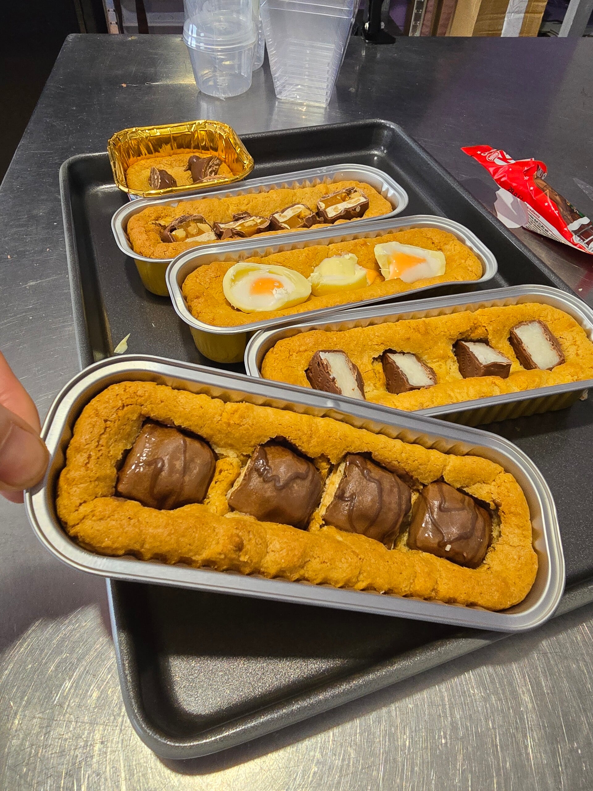 These cookie trays are filled with soft bake cookies stuffed with fillings and chocolate and topped with any flavour perfect treat